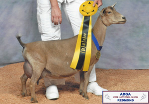 Second place four year old, second udder at the ADGA National Show, part of our first place Dairy Herd and first place Breeder's Trio entries